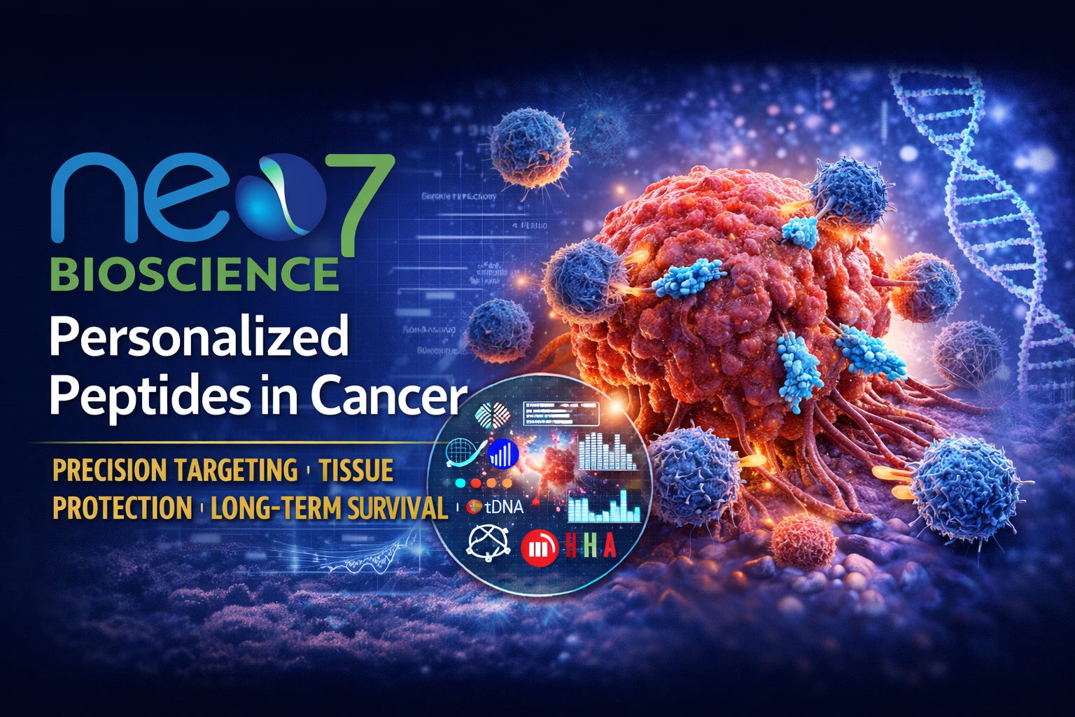 Cancer is not a uniform adversary, and it cannot be responsibly addressed with population-averaged or assumption-based therapies. From the outset, personalized molecular targeting is absolutely essential—not as an enhancement, but as the foundational requirement for establishing effective biological defense, regulatory balance, and durable disease control. Neo7 Personalized Peptides in Cancer represents a precision systems-medicine approach that replaces toxicity, empiricism, and irreversible biological risk with continuous molecular surveillance, intelligent target selection, and personalized peptide engineering—while delivering highly favorable objective response rates (ORR) associated with long-term survival. By integrating functional genomics, ctDNA exome surveillance, proteomic profiling, and HLA phenotyping at initiation, Neo7 defines each individual’s unique molecular terrain before therapeutic pressure is applied. This early personalization establishes a regulatory framework that aligns immune activation, tumor suppression, and tissue protection from the very beginning, preventing misdirected immune responses, unnecessary tissue injury, accelerated resistance, and long-term biological instability. Rather than reacting to damage after it occurs, Neo7 builds a precision-guided defense system that regulates cancer biology while preserving human physiology.